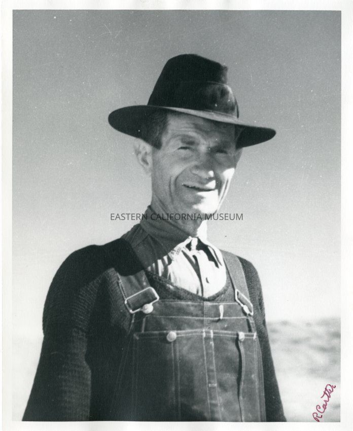Photo of Pete Aguereberry, Death Valley prospector and miner of Basque heritage. He partnered with Shorty Harris to locate the Harrisburg strike and later went his own way and worked the Eureka Mine for many years. Aguereberry Point is named for him.
