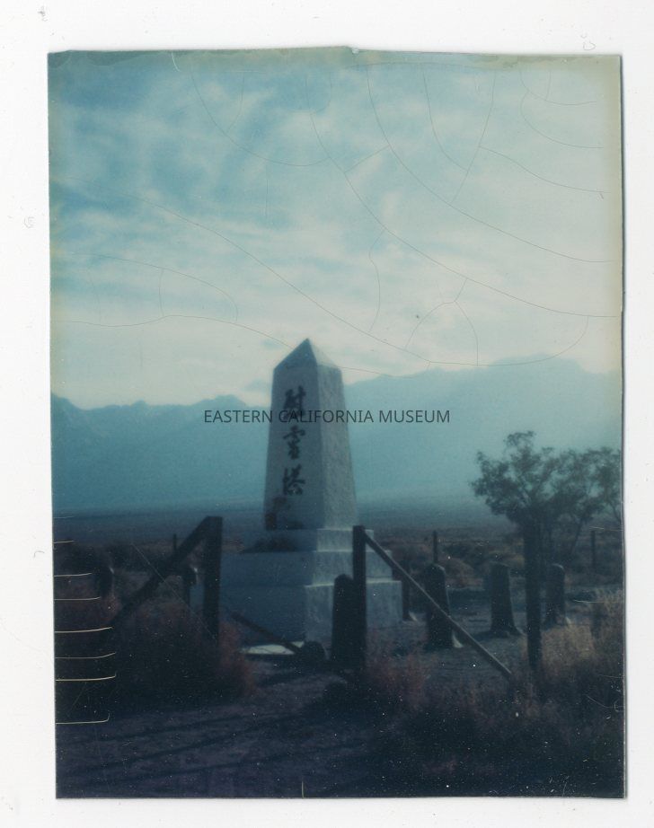 Color photo of the cemetery monument at Manzanar.Photograph Details