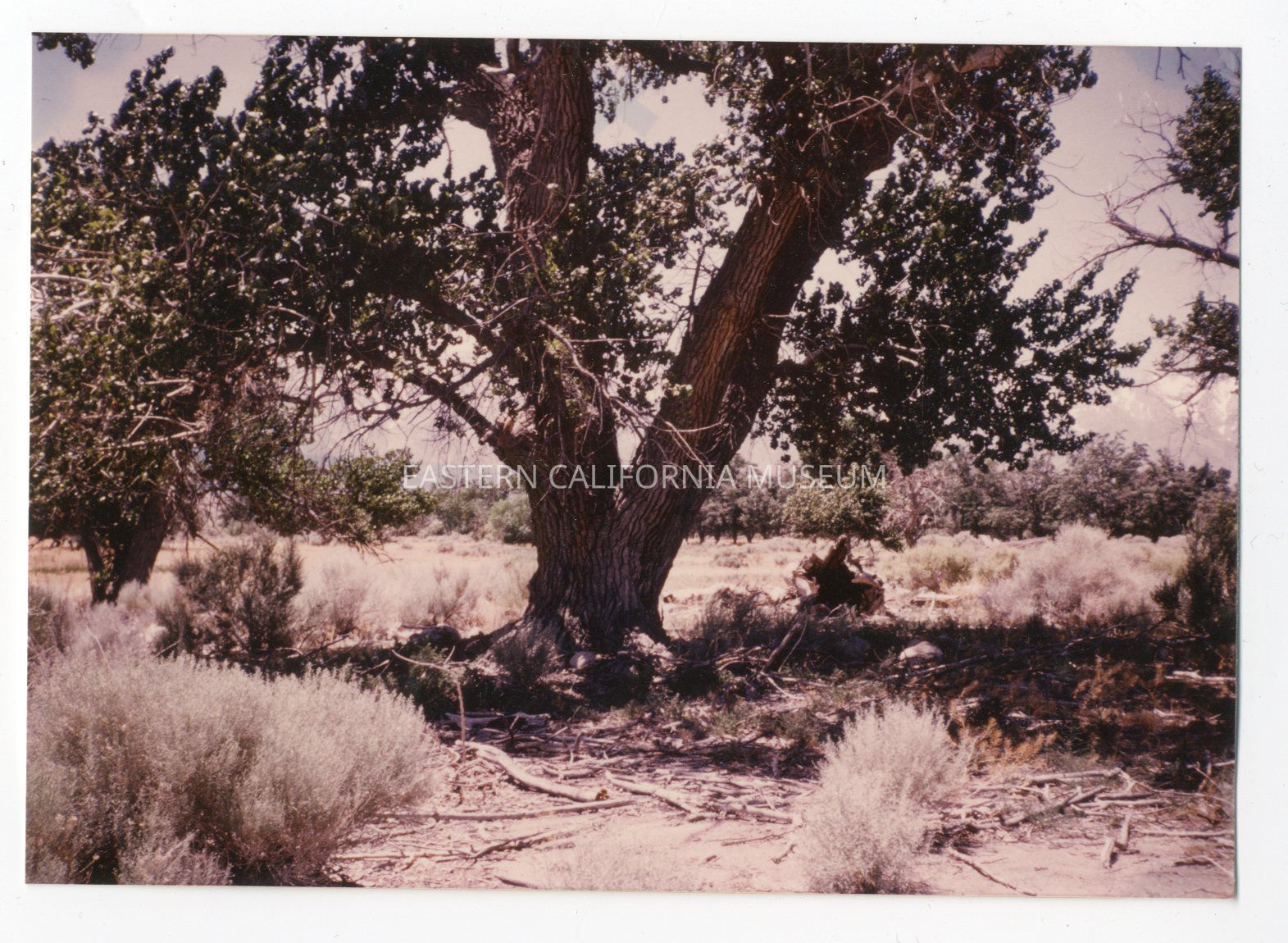 Color photo of a tree at Manzanar.