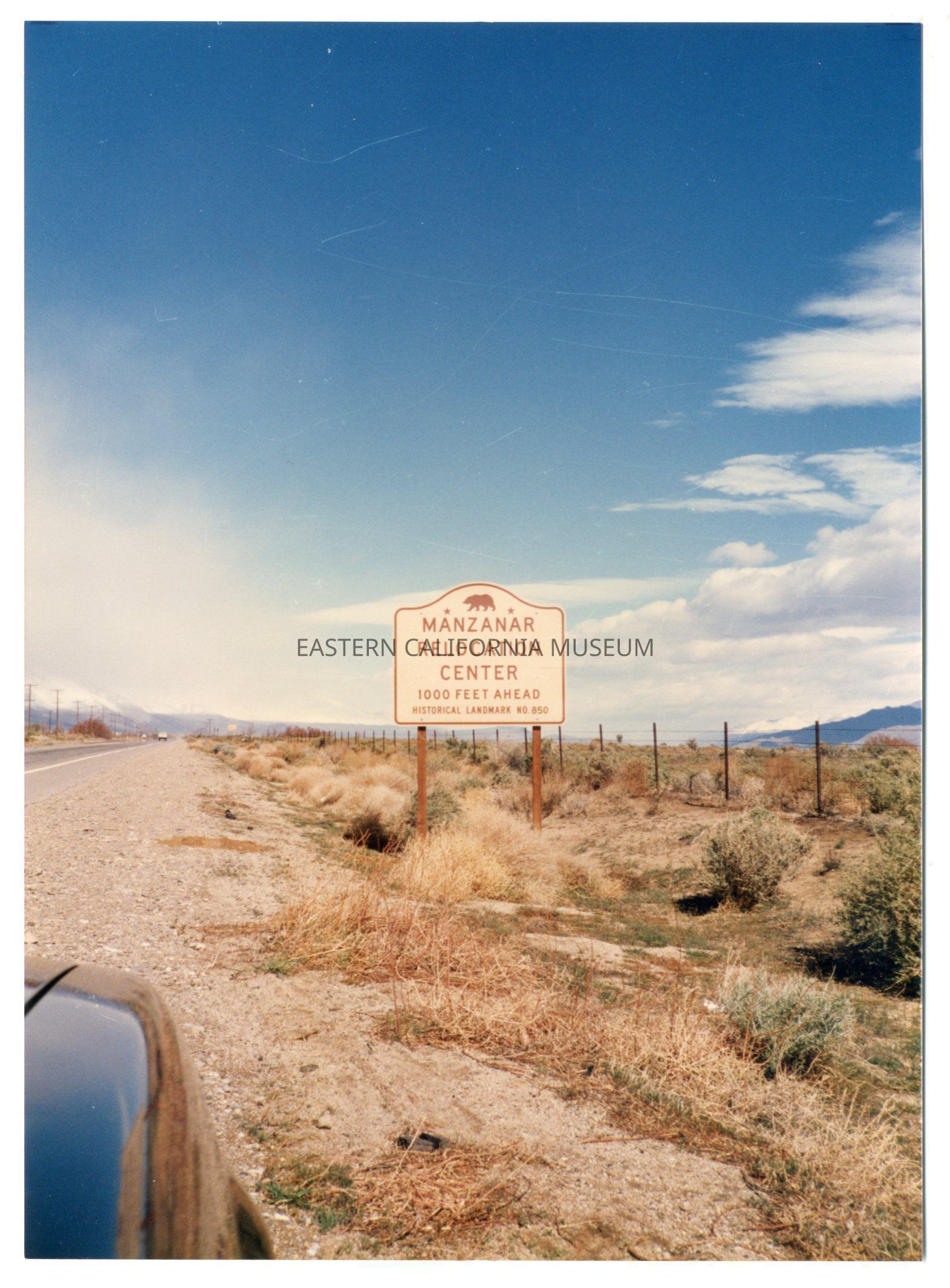 Color photo of the Historical Landmark sign for Manzanar Relocation Center.