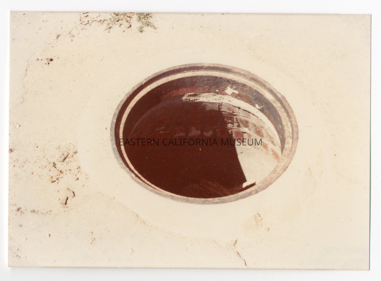 Color photo of a sewage manhole at Manzanar War Relocation Center.Photograph Details