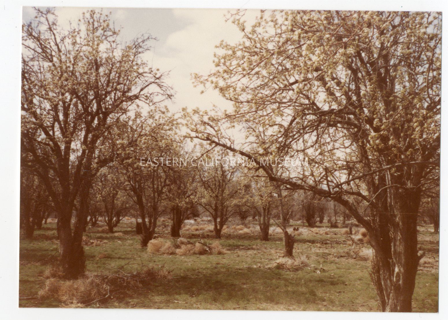 Color photo of the orchard blossoming at Manzanar War Relocation Center.