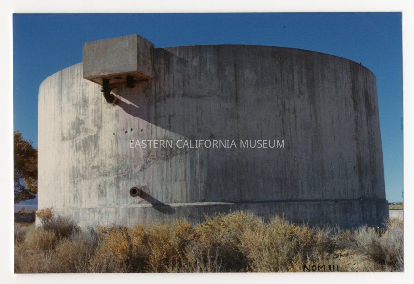Color photograph of large, tall, round concrete structure that is one of the structures from the Sewage Treatment Plant. This is the Digester Tank.