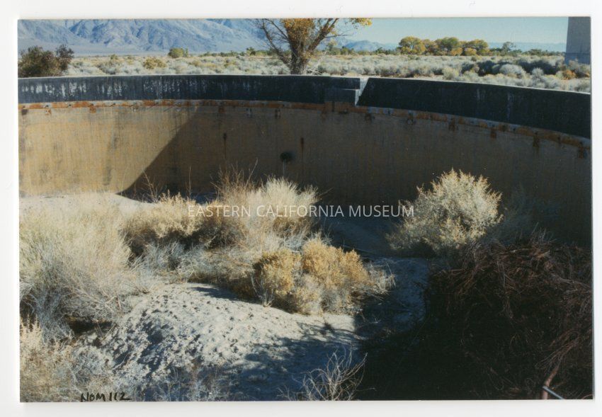Color photograph from inside the walls of one of the concrete structures from the Sewage Treatment Plant.