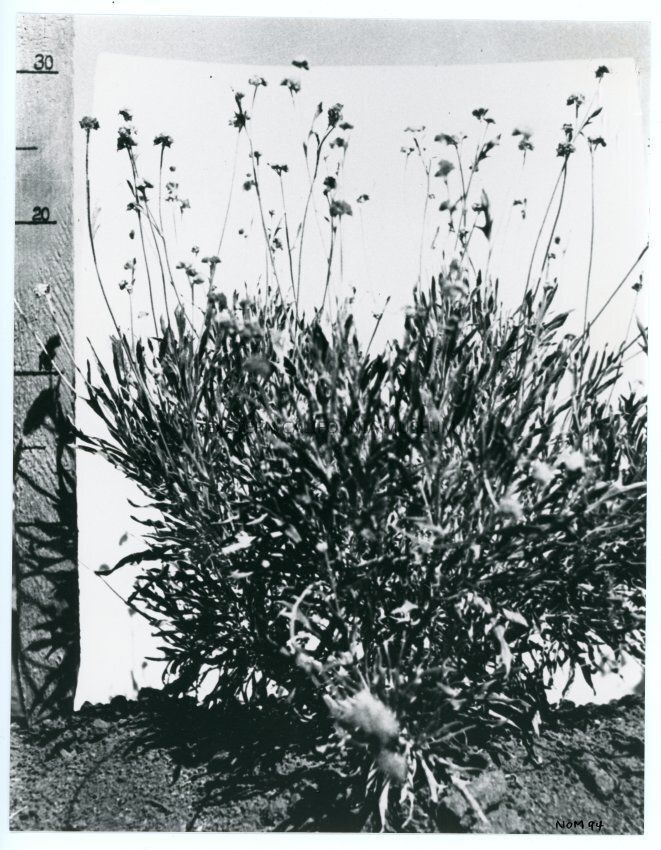 Black and white photograph of a guayule plant that was part of the guayule rubber project at Manzanar.Photograph Details