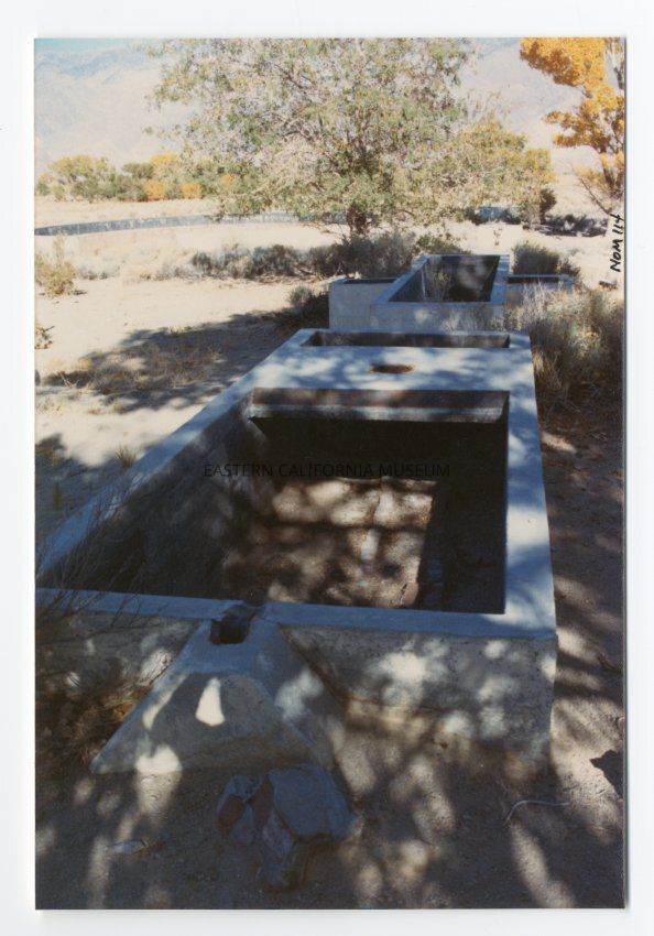 Color photograph of the remains of two rectangular shaped tanks with concrete walls and open on top. These are part of the remains of the Sewage Treatment Plant.
