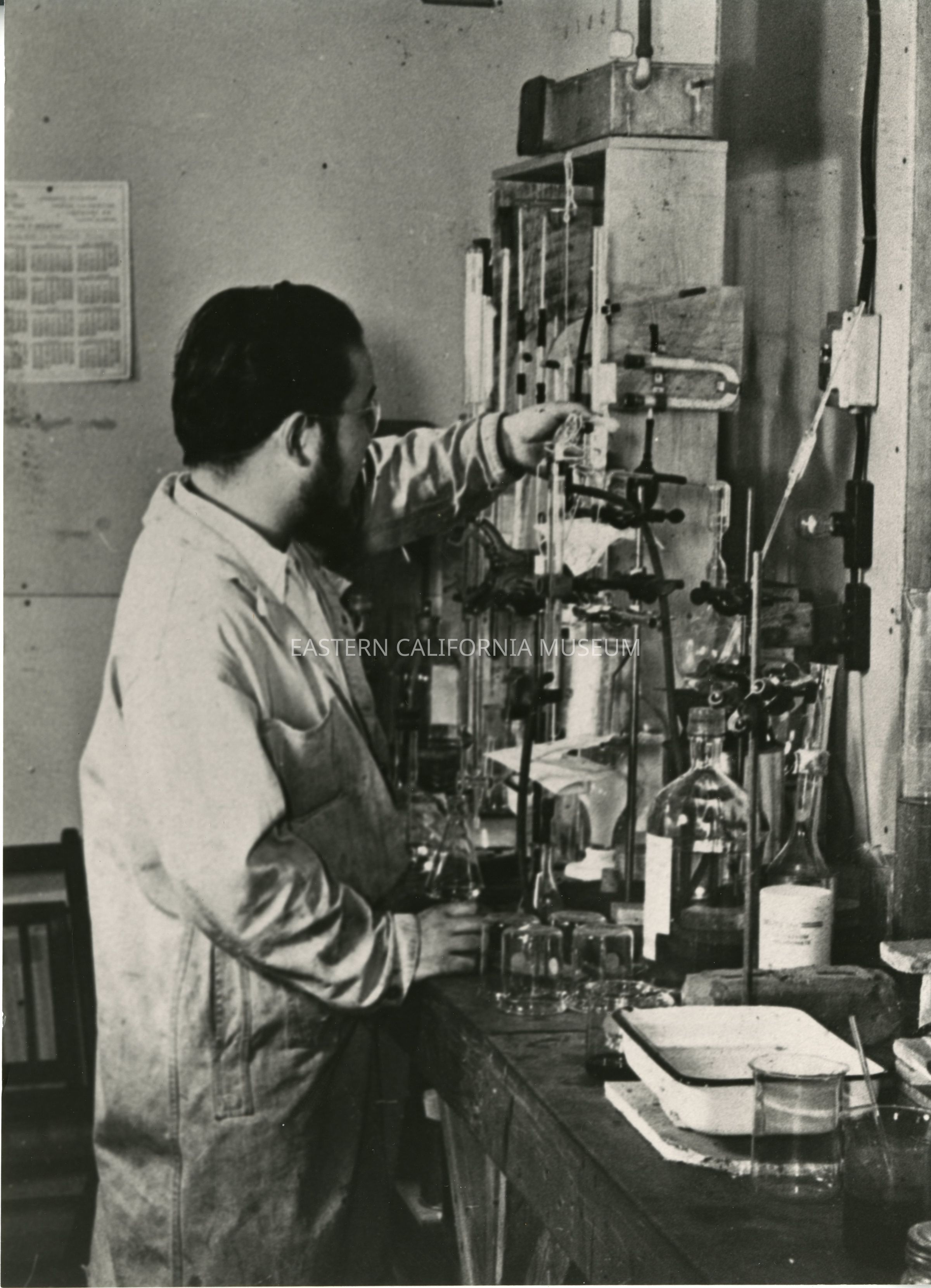 Photo of Shimpe Nishimura in guayule lab.Photograph Details