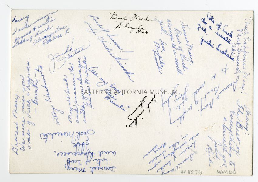 On reverse are many signatures and inscriptions to Mary Kageyama from most of the members of the Modernaires.Photograph Details