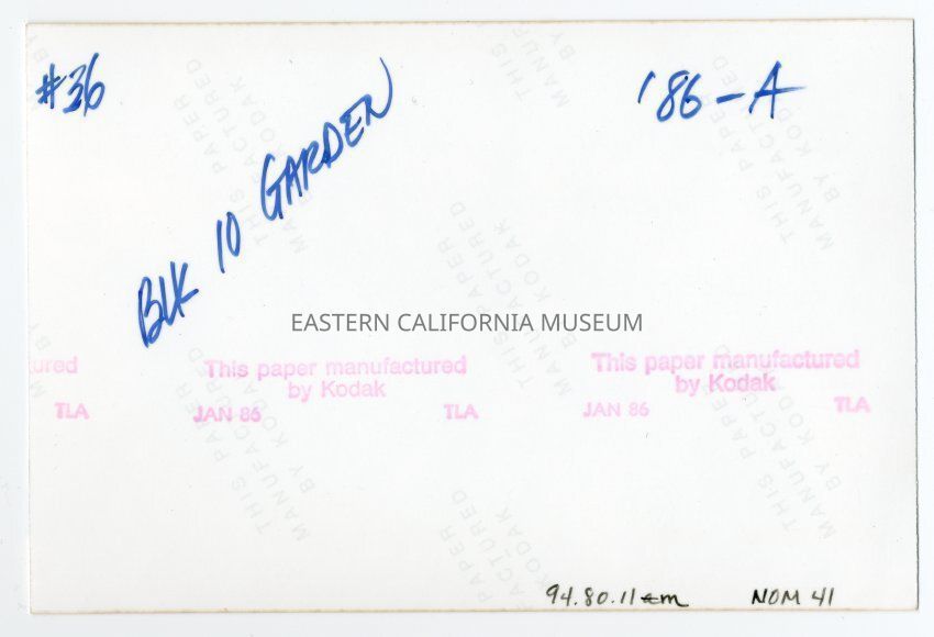 Written in blue ink on reverse: #36. Blk 10 garden. '86-A.Photograph Details