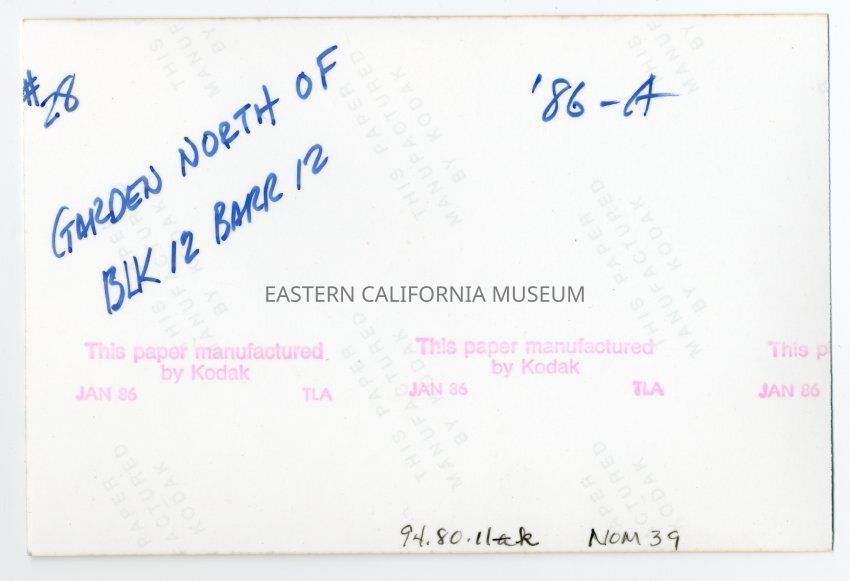 Written in blue ink on reverse: #28. Garden north of Blk 12 Barr 22. '86-A.Photograph Details