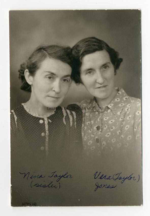 Studio portrait of sisters Nina Taylor and Vera Taylor Jones. They are identified in ink on bottom front of photo.