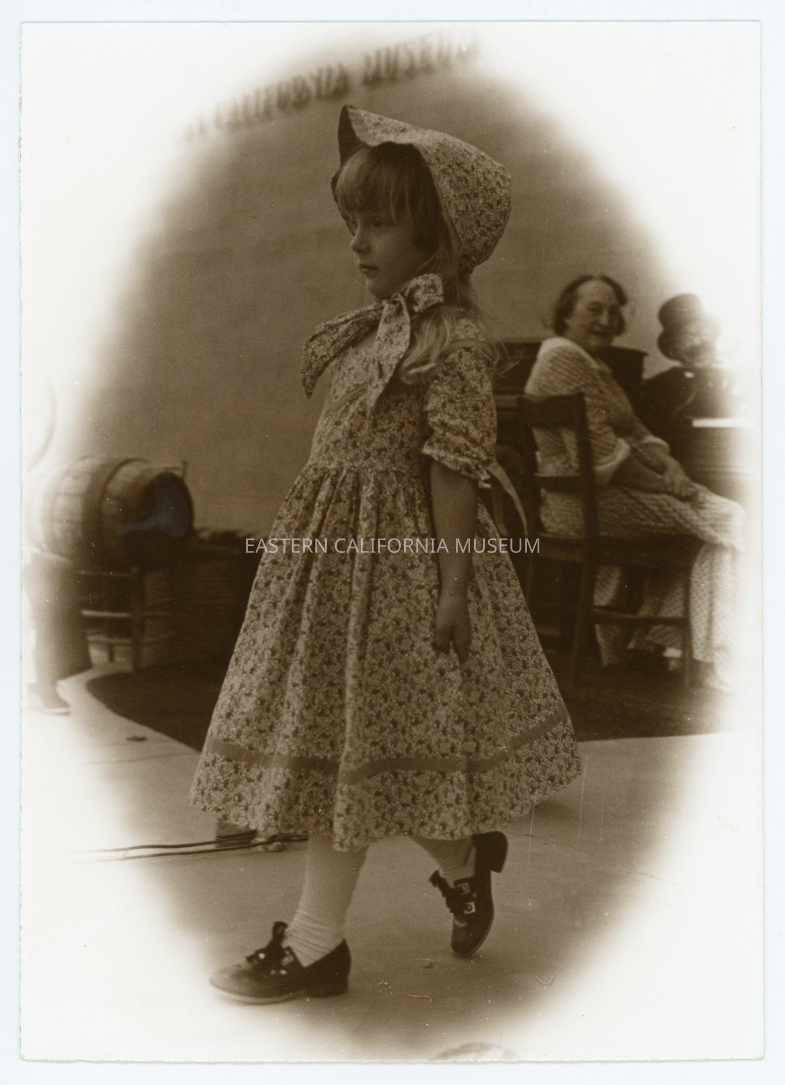 She is wearing an outfit/costume that is in the museum's collections (2003.4.1a-c). The dress belonged to Mary Aseltine, who wore it during the 1937 Wedding of the Waters celebration.Photograph Details