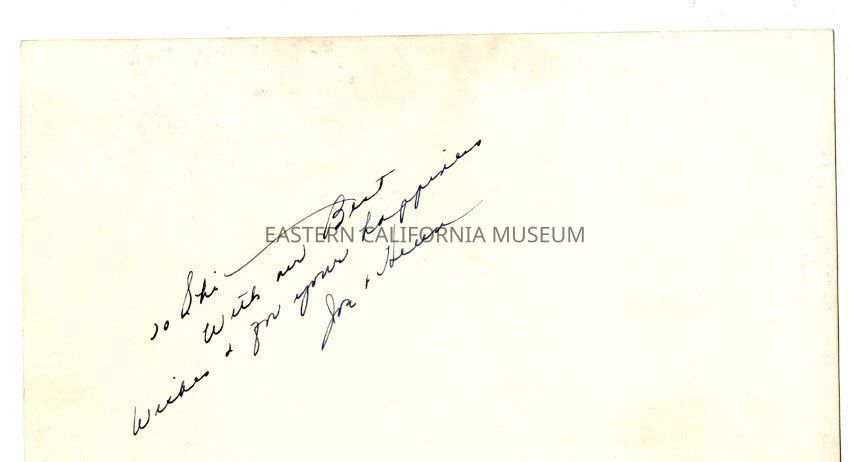 Written in script on back of photograph: "To Shi -- With our best wishes for your happiness, Joe + Helen."Collection
