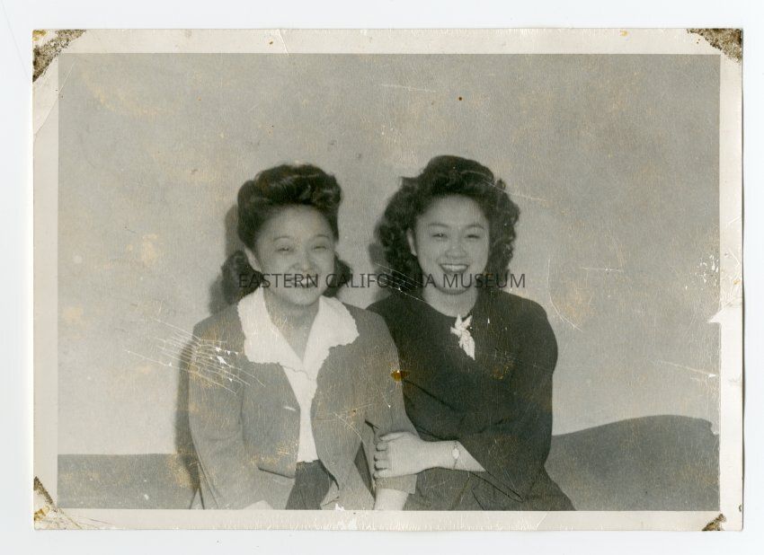 Interior photograph of two young women sitting side by side, identified as Grace and Rosie Maruki.