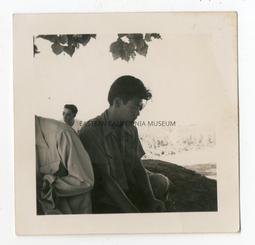 From Louie Sakamoto's photos. Exterior photo of a young man sitting under a tree. There are others around him.