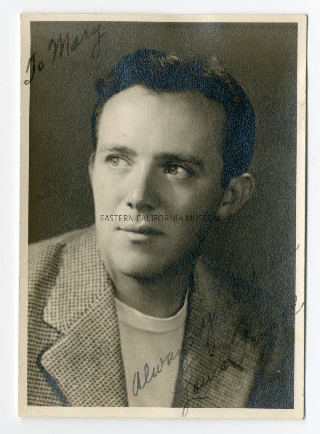 Studio portrait of Louis Frizzell, music director at Manzanar. Written in ink on front of photo: "To Mary, Always your friend, Louis Frizzell."