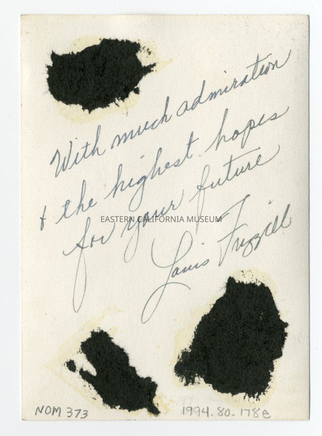 On the rear of photo is written "With much admiration & the highest hopes for your future, Louis Frizzell."Collection