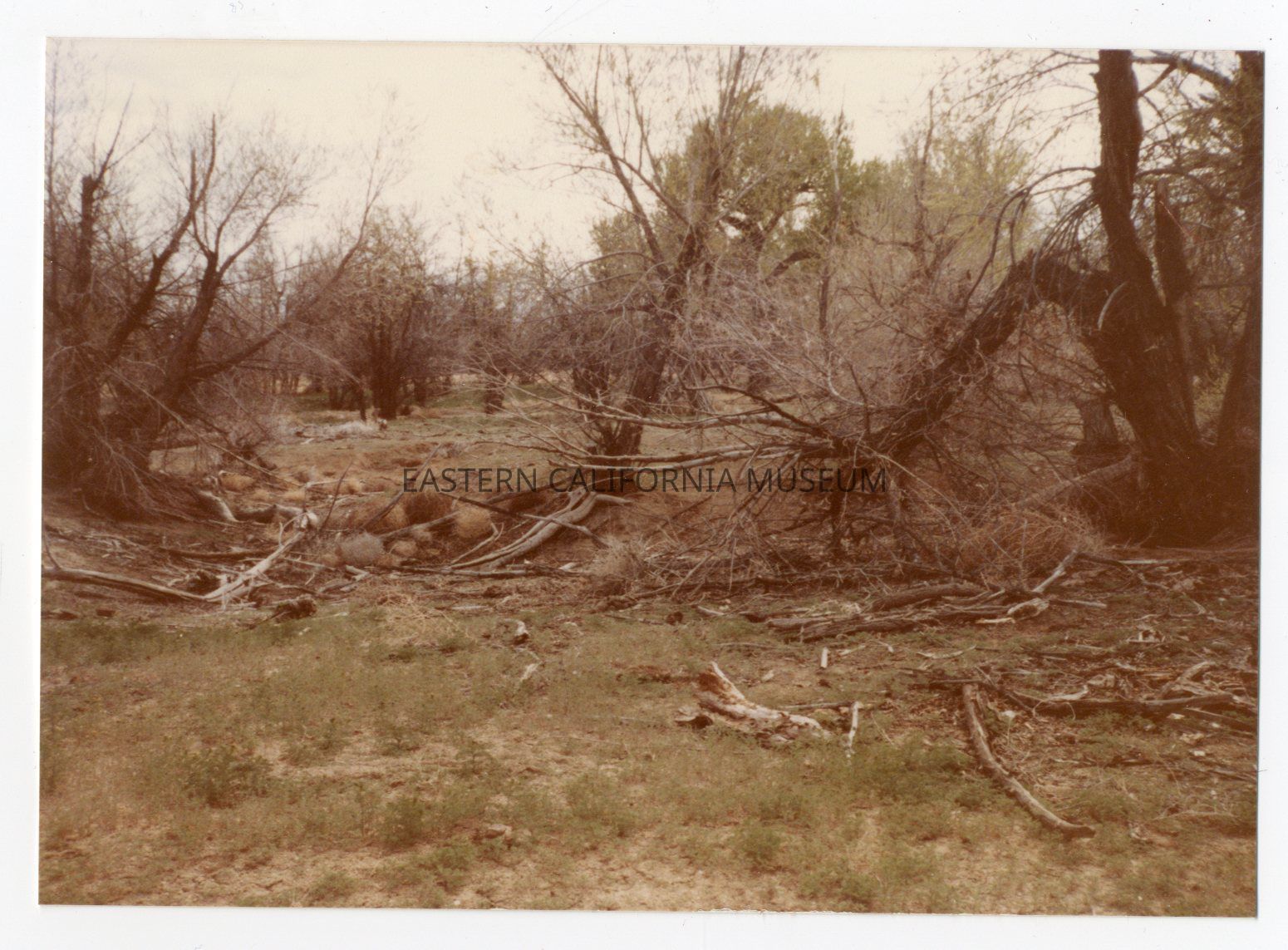 Color photo of the remains of the orchard at Manzanar War Relocation Center.
