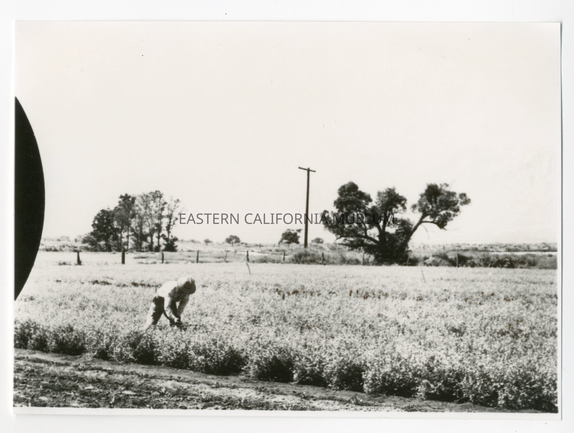 Copy of a photo of a man working in a field (guayule?) at Manzanar War Relocation Center. This copy was printed on March 1984.Photograph Details