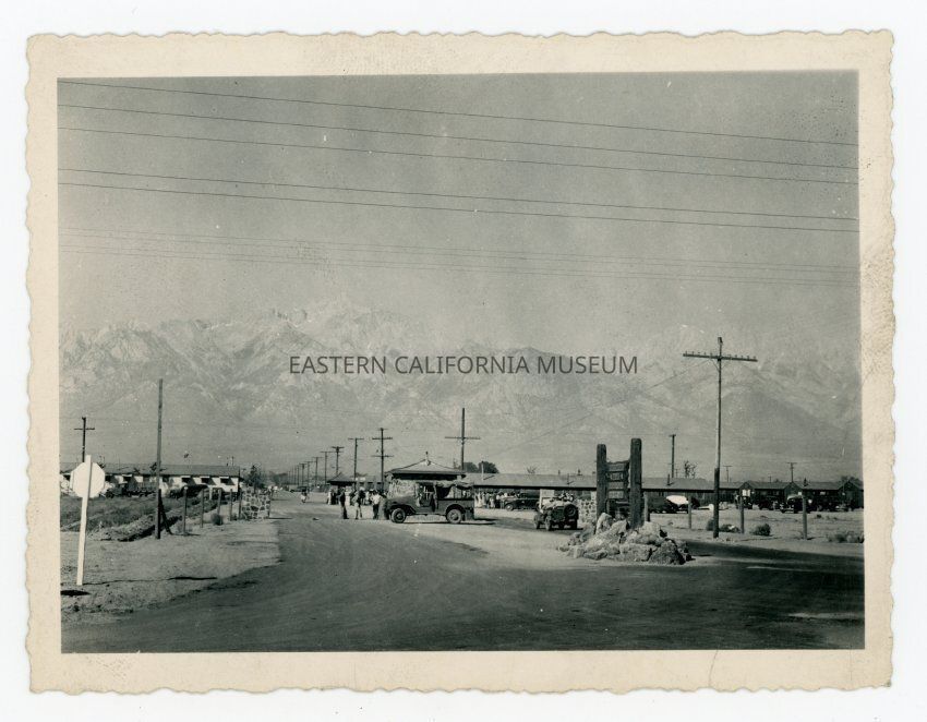 B/w photo of Manzanar entrance.Photograph Details