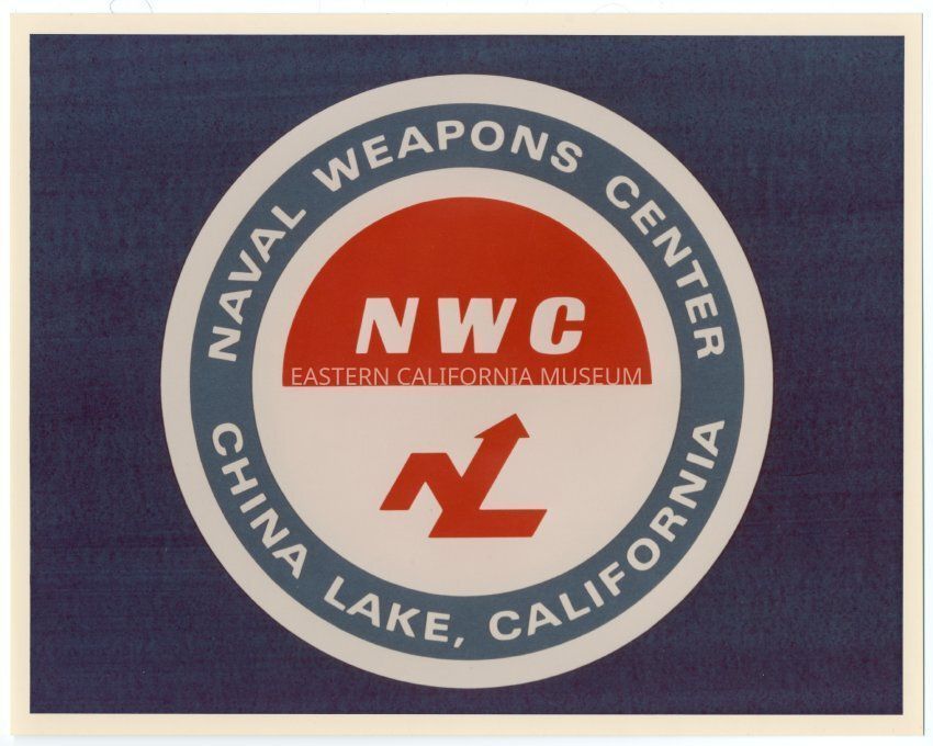 Color print of the Naval Weapons Center, China Lake, California logo. Navy, white, and red.