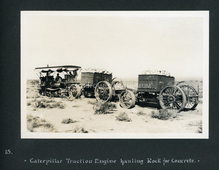 Caption: 15. Caterpillar Traction Engine hauling Rock for Concrete.Collection