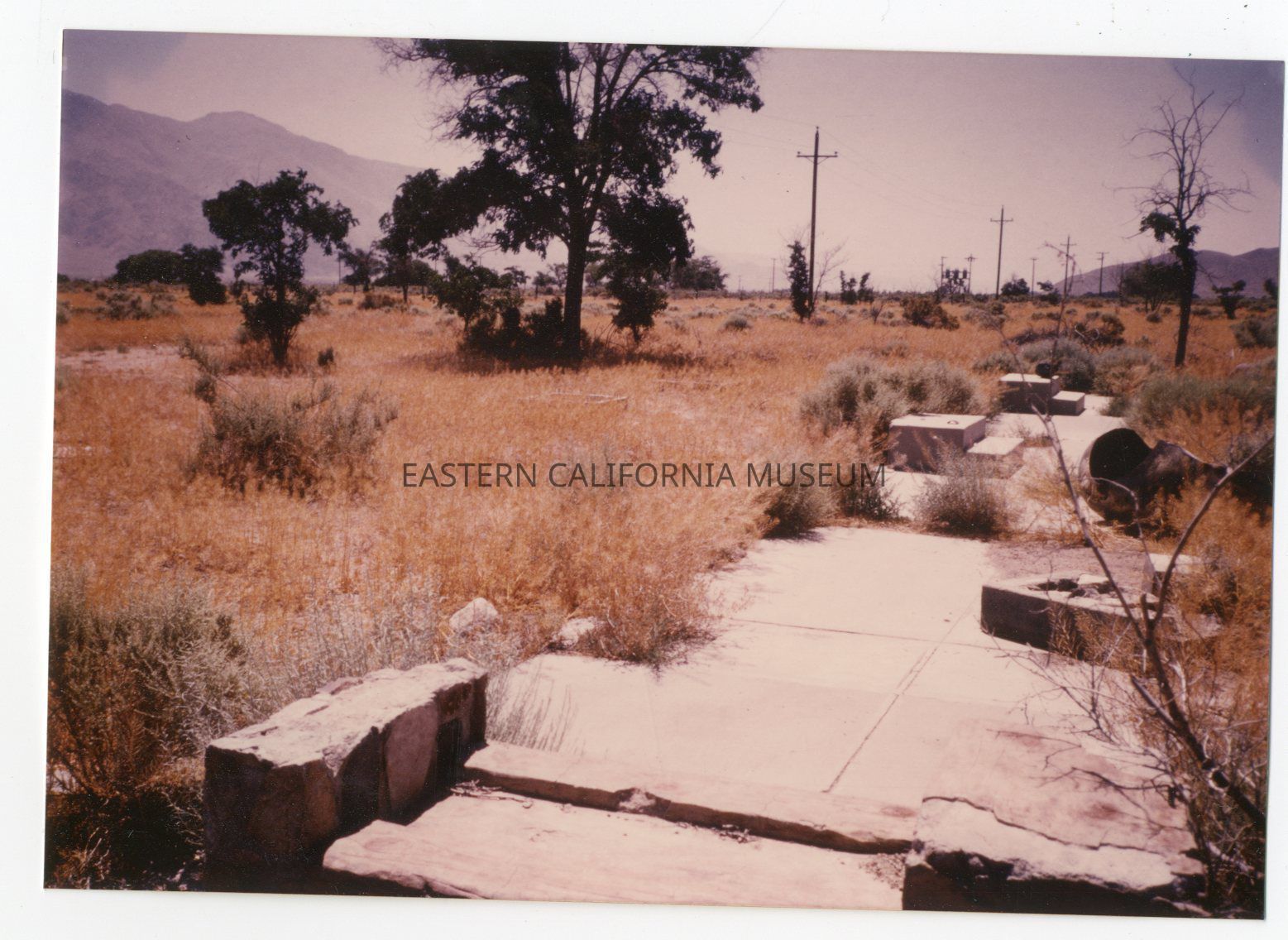 Color photo of concrete foundations at Manzanar War Relocation Center.Photograph Details