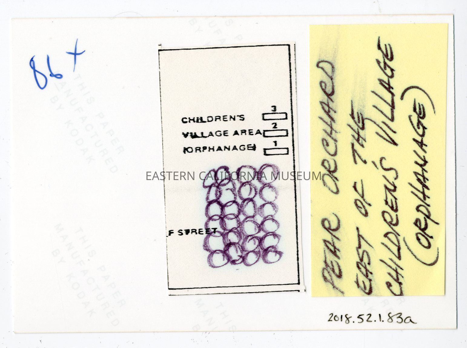There is a piece of paper with the Children's Village area on it with the rows of trees marked in pen.Photograph Details