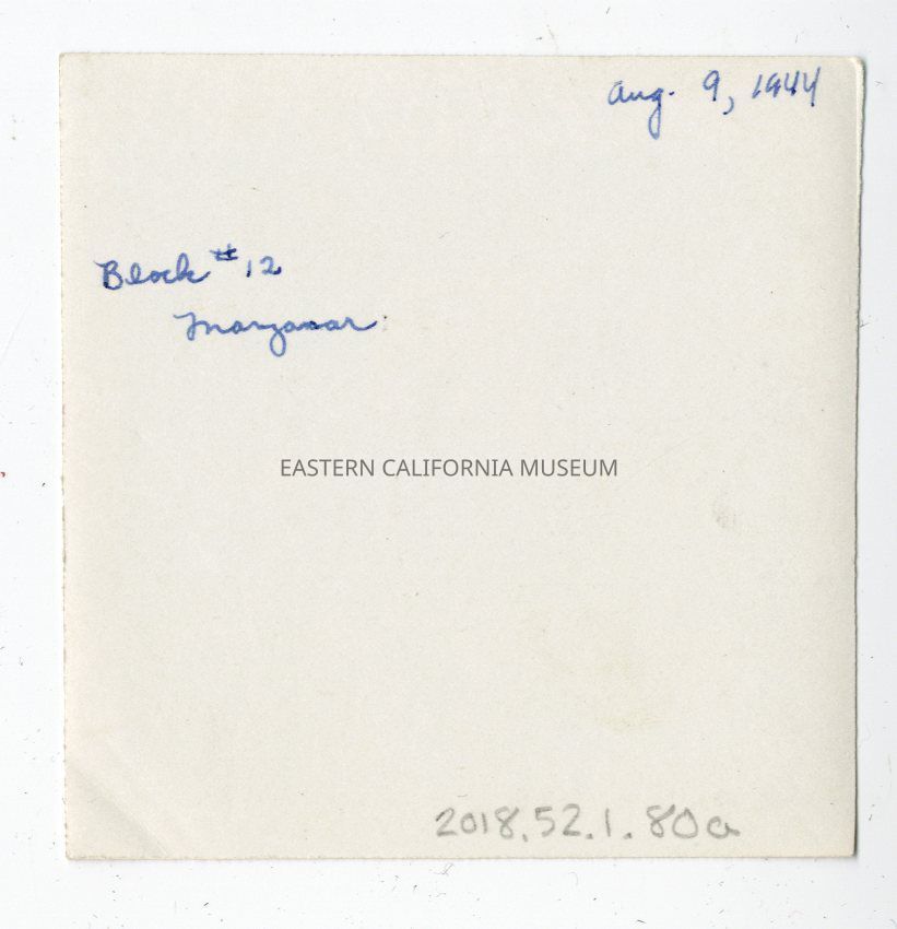 Written in blue ink on reverse: Aug. 9, 1944. Block #12 Manzanar.Photograph Details
