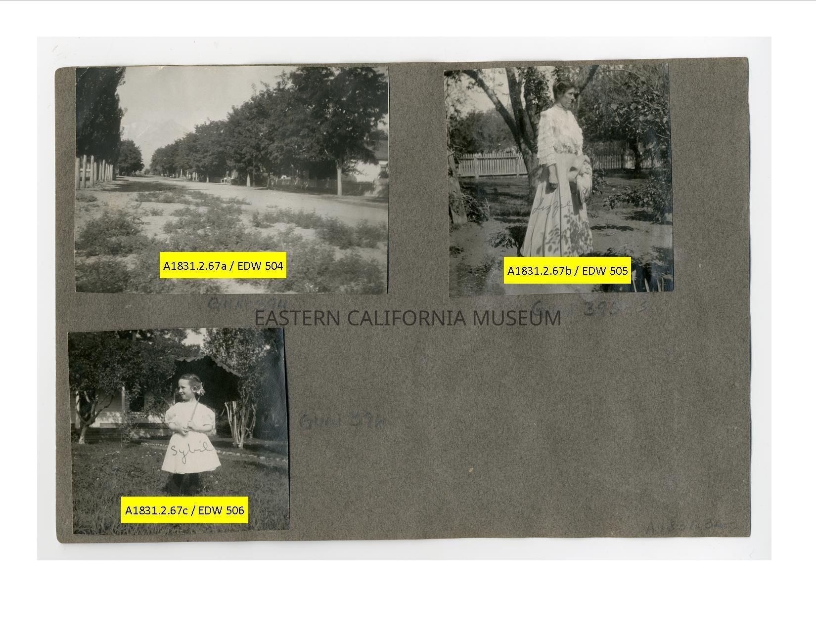 A1831.2.67c: Photo of a little girl holding a parasol. She is identified as Sybil and the location may be the Hannah House in Independence.Collection