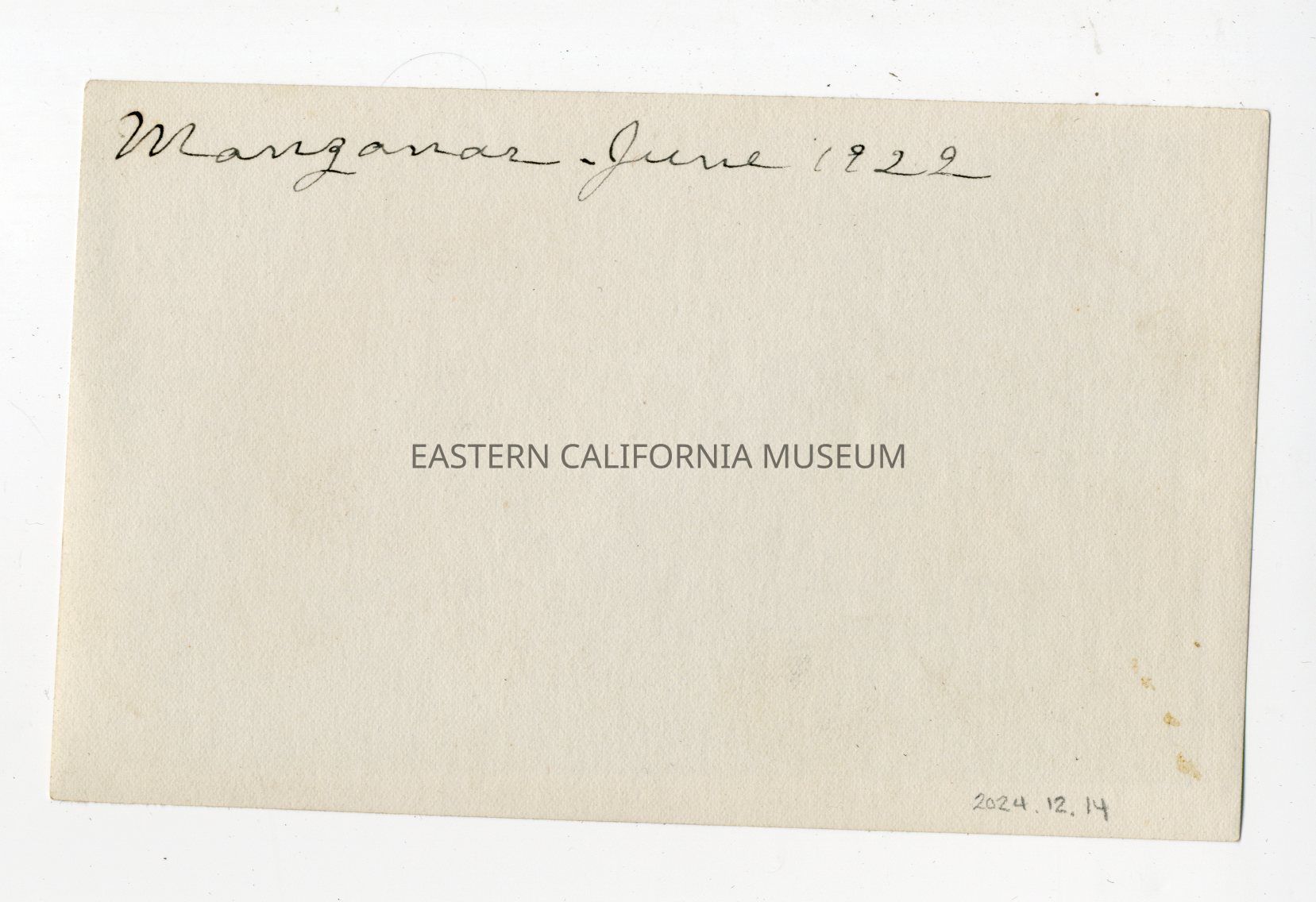 Written in black ink on reverse: Manzanar, June 1922.Photograph Details