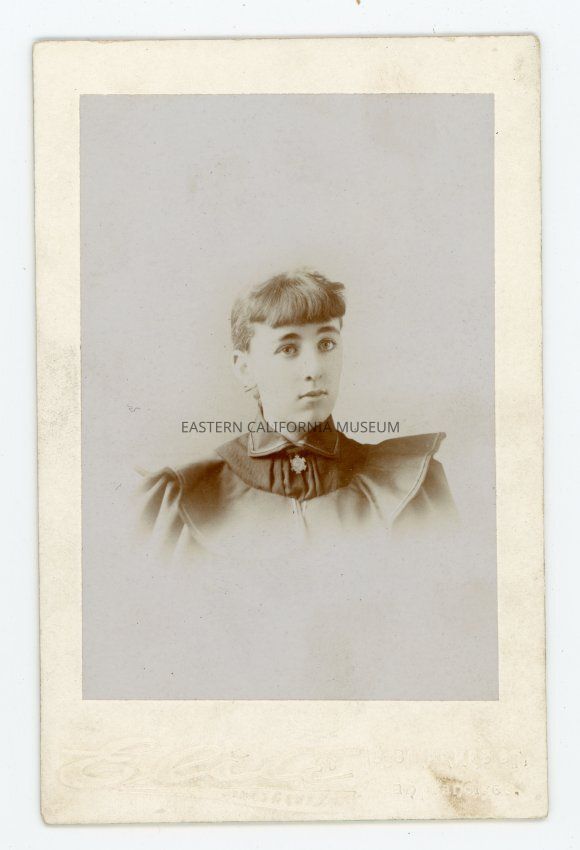 Mounted bust length photograph of a young woman. Photographer was Elite, Jones and Lotz, of San Francisco. Same photo as 1985.1.2.26.