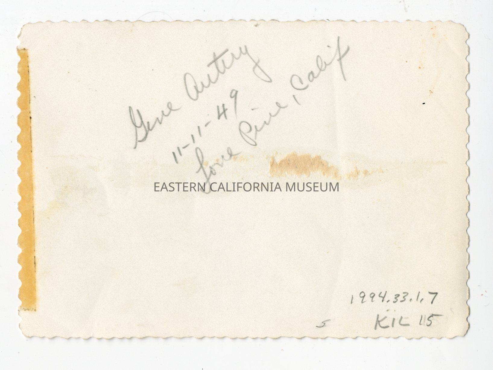 Written in pencil on reverse: Gene Autry, 11/11/49, Lone Pine, Calif.Collection