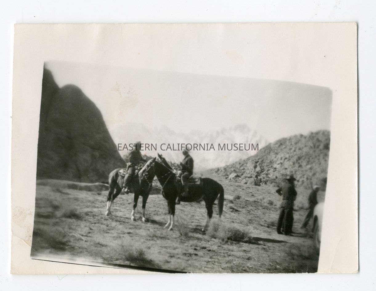 Small copy of photo 1994.33.1.12. It is a photo of Gene Autry in the Alabama Hills on 11/11/49.