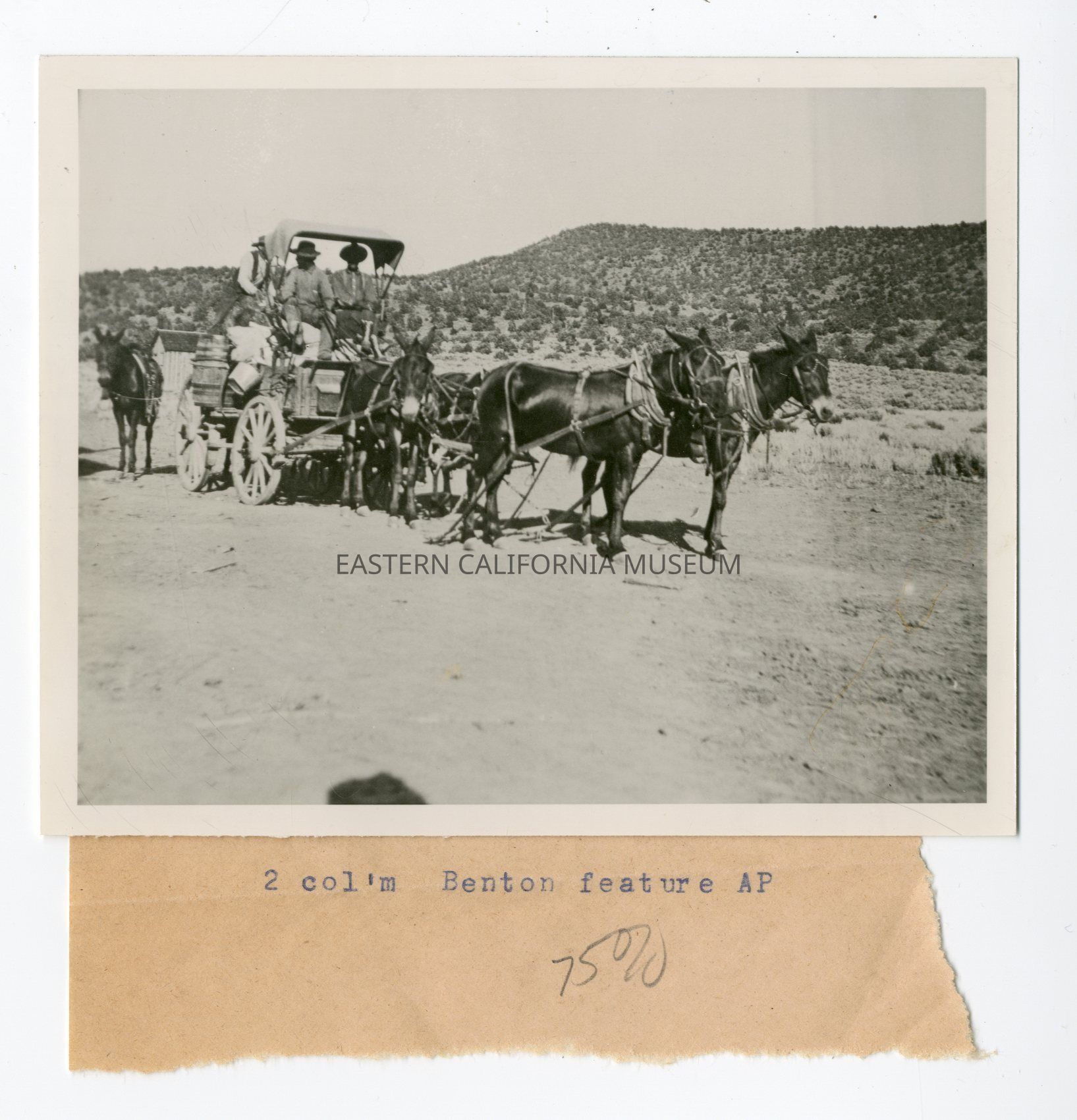 Scrap of brown paper affixed to photo says: 2 col'm Benton feature AP 75%.Collection