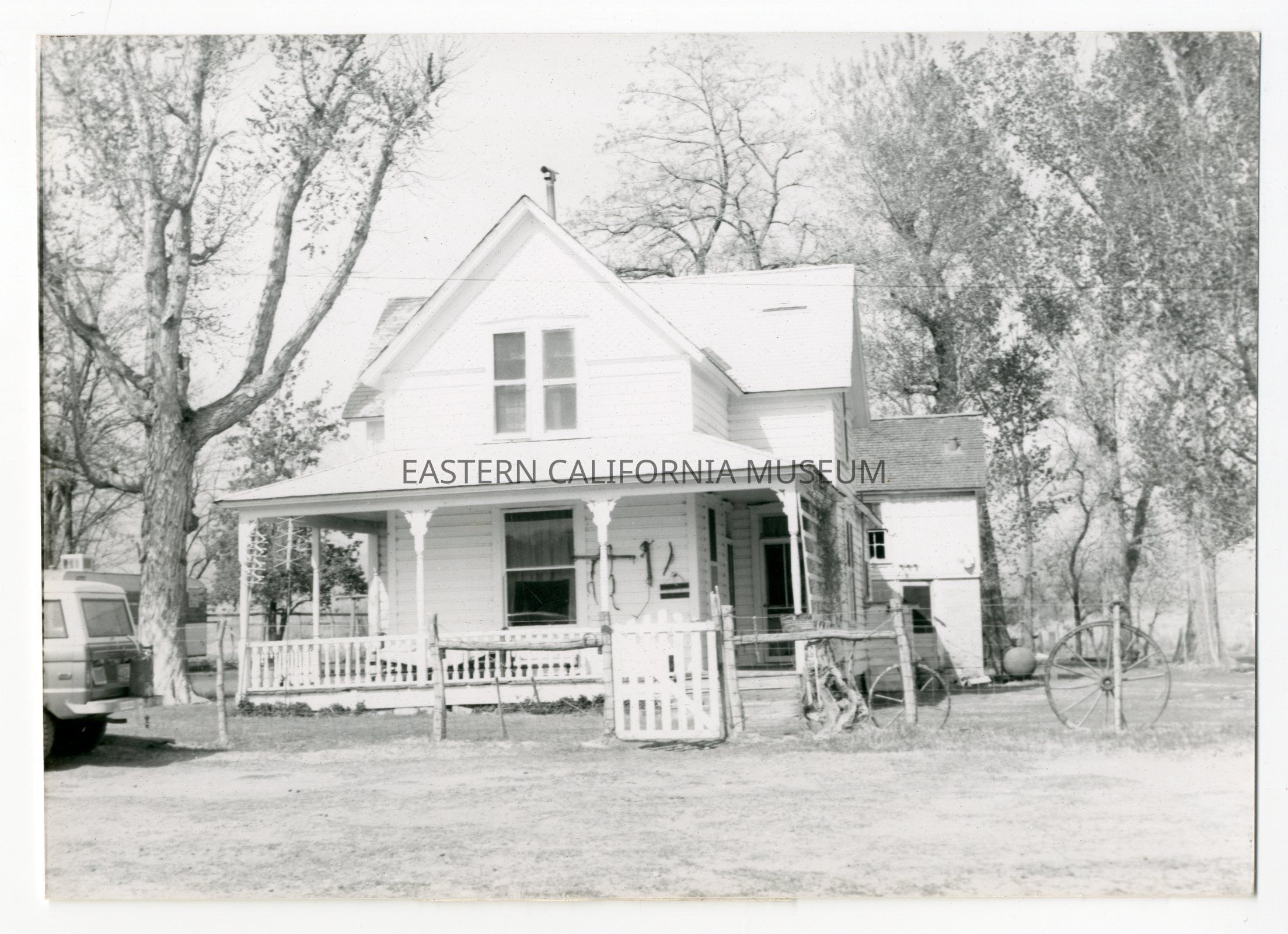 Photo of a white, two story house. Written on reverse: Thomson house. Inyo Silos no. 2.