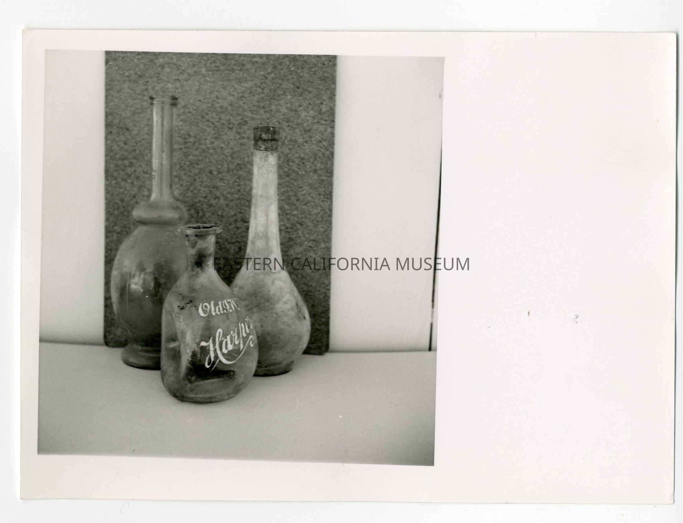 Photo of three glass bottles, one of which has writing on it. Written on reverse: Page 31, Pic. B.