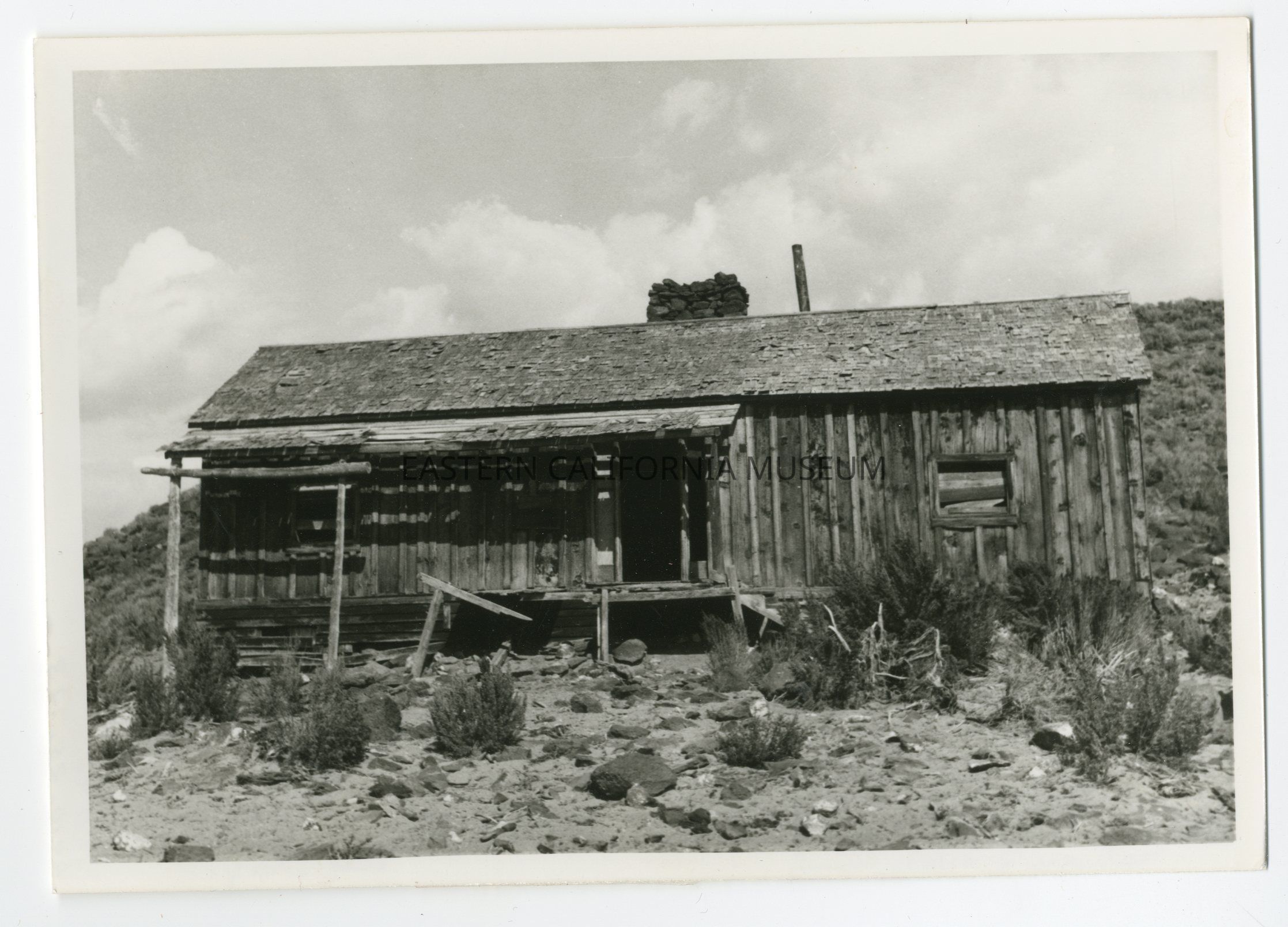 Photo of an abandoned wooden cabin. Written on reverse: By Stage.