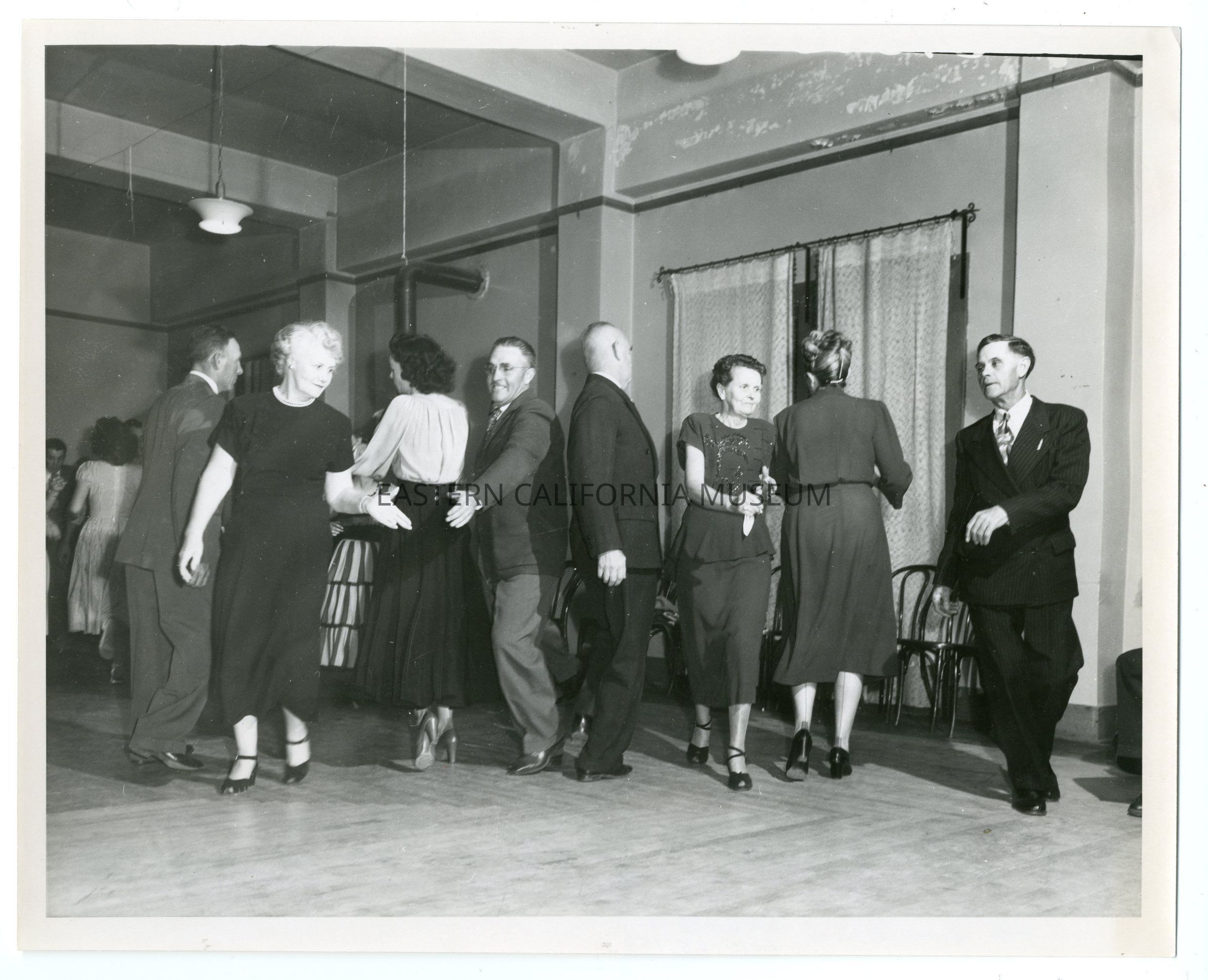 Interior photo of four couples dancing.