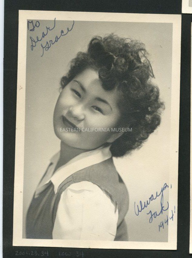 Studio portrait, maybe a school photo, of a young woman. Inscribed in upper left "To Dear Grace" and in lower right "Always, Tak 1944."Collection