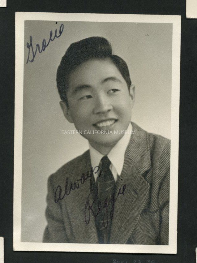 Studio portrait, maybe a school photo, of a young man. Inscribed in upper left "Gracie" and in lower center "Always, Reggie." There is writing on the reverse of this photo.Collection