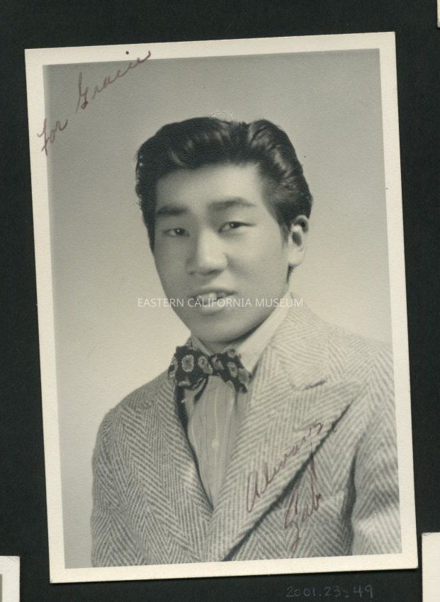 Studio portrait, maybe a school photo, of a young man wearing a bow tie. Inscribed in upper left "For Gracie" and in lower right "Always, Sab."Collection