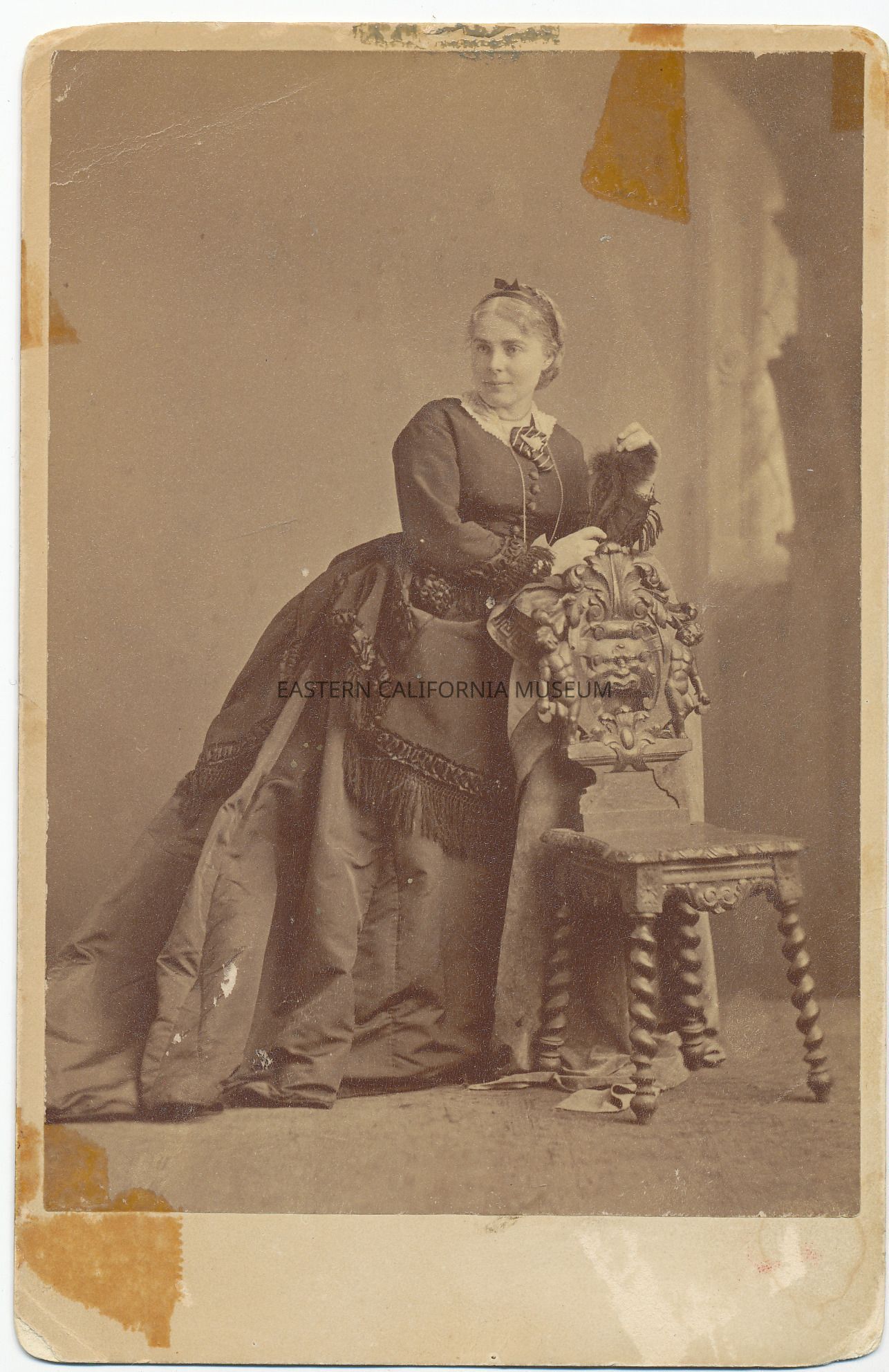 Mounted full-length studio photograph of Sarah (AKA Sara, Sally, or Sallie) Stevens, one of the daughters of Col. Sherman S. Stevens and sister to Marcia (AKA Molly or Mollie) Stevens.