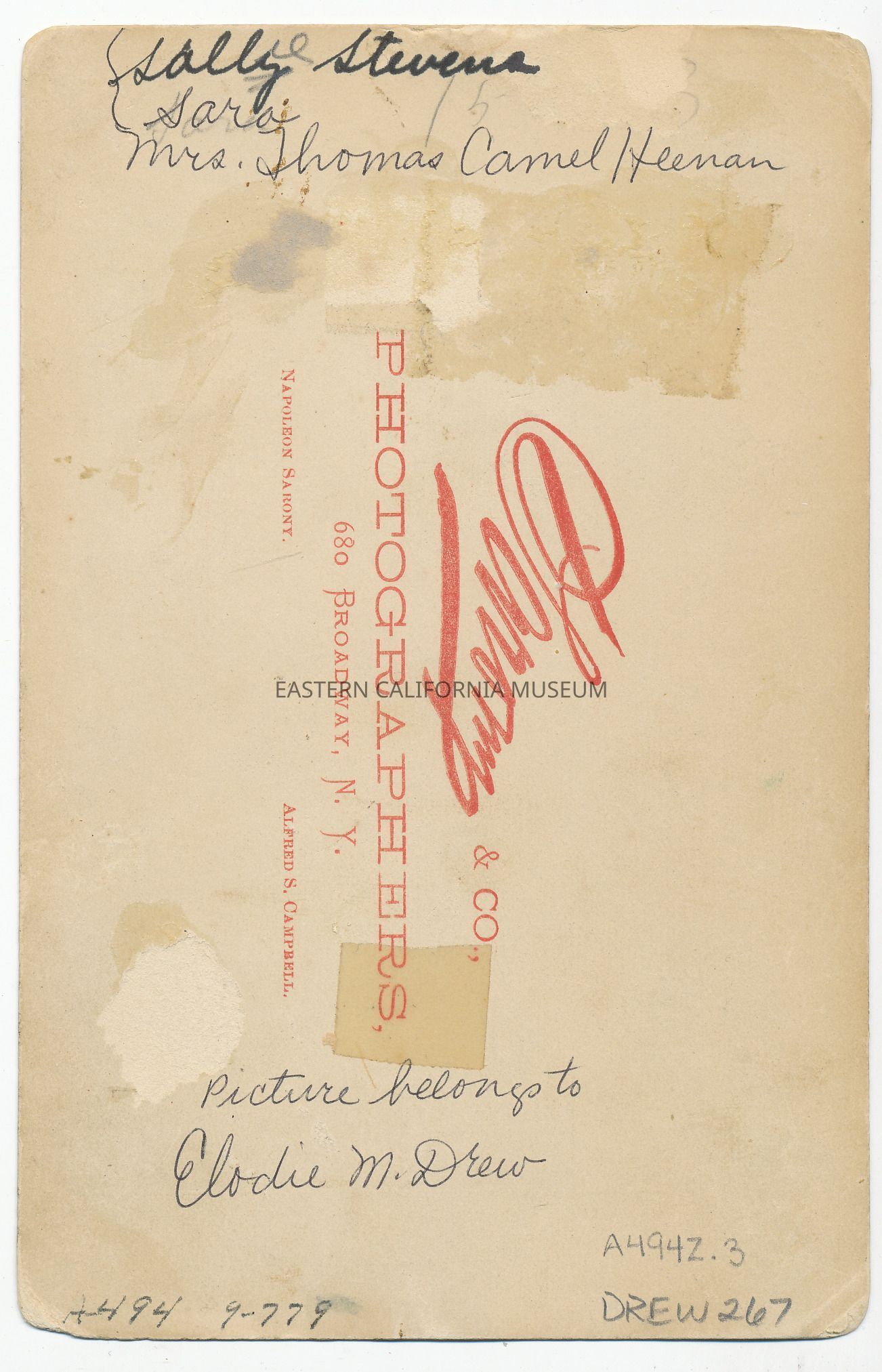 Written in ink on reverse: Mrs. Thomas [John] Camel Heenan.