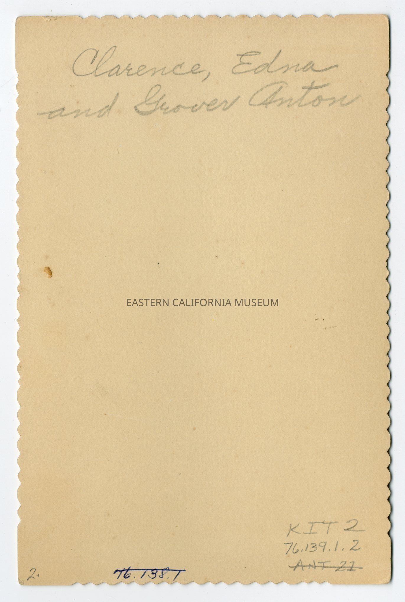 Written in pencil on reverse: Clarence, Edna, and Grover Anton.Collection