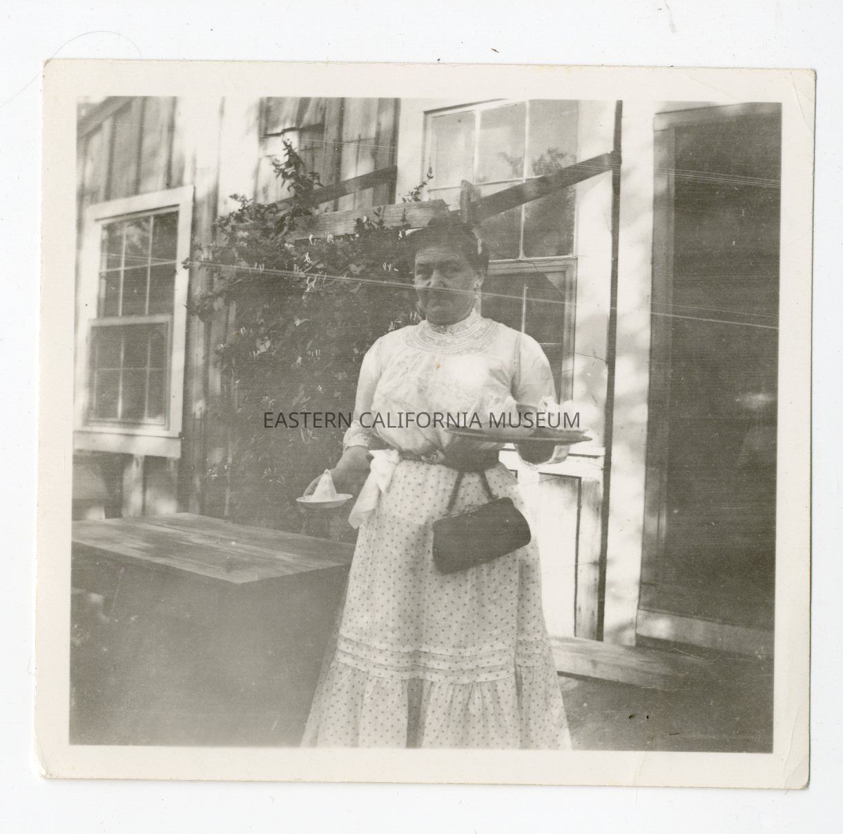 Photo of a woman identified as Amelia Anton holding plates/trays in both her hands.