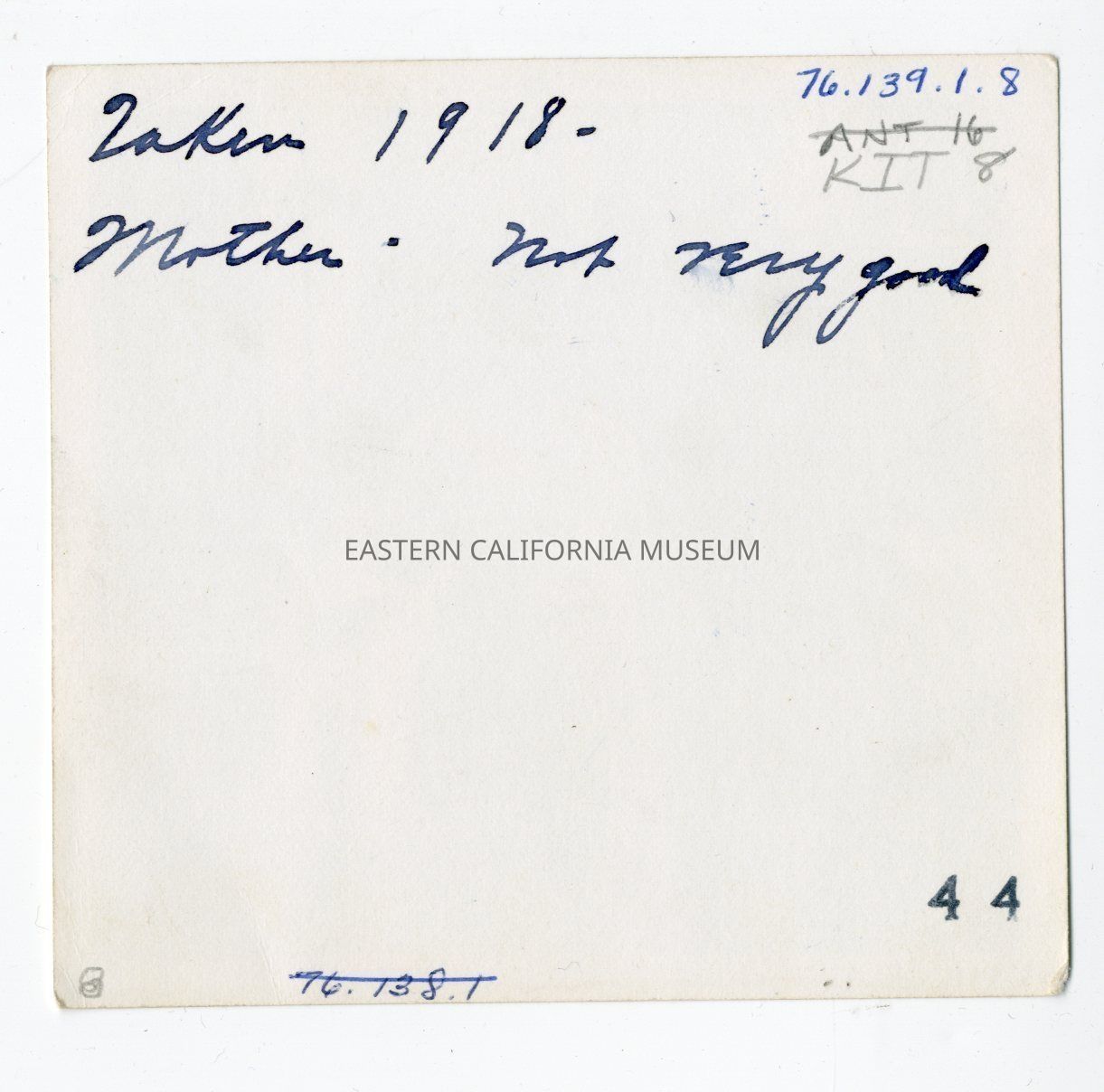 Written in ink on reverse: Taken 1918, Mother, not very good.