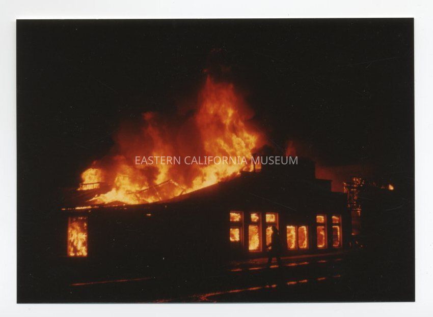Color photograph of a fire in Independence on February 22, 1963. The fire burned the Independence Hotel and building next door (formerly Miller and Jobes Garage).Collection