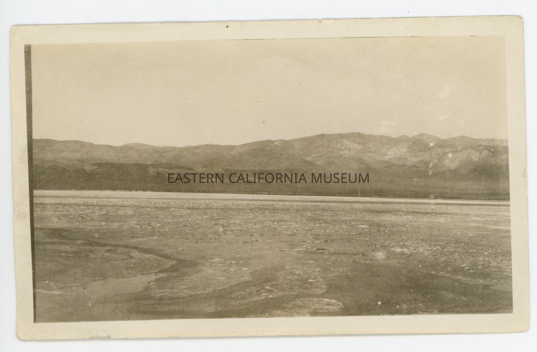 Photo of a lake or lakebed with mountains in the background. The location and date are almost certainly Deep Springs, 1925.Photograph Details