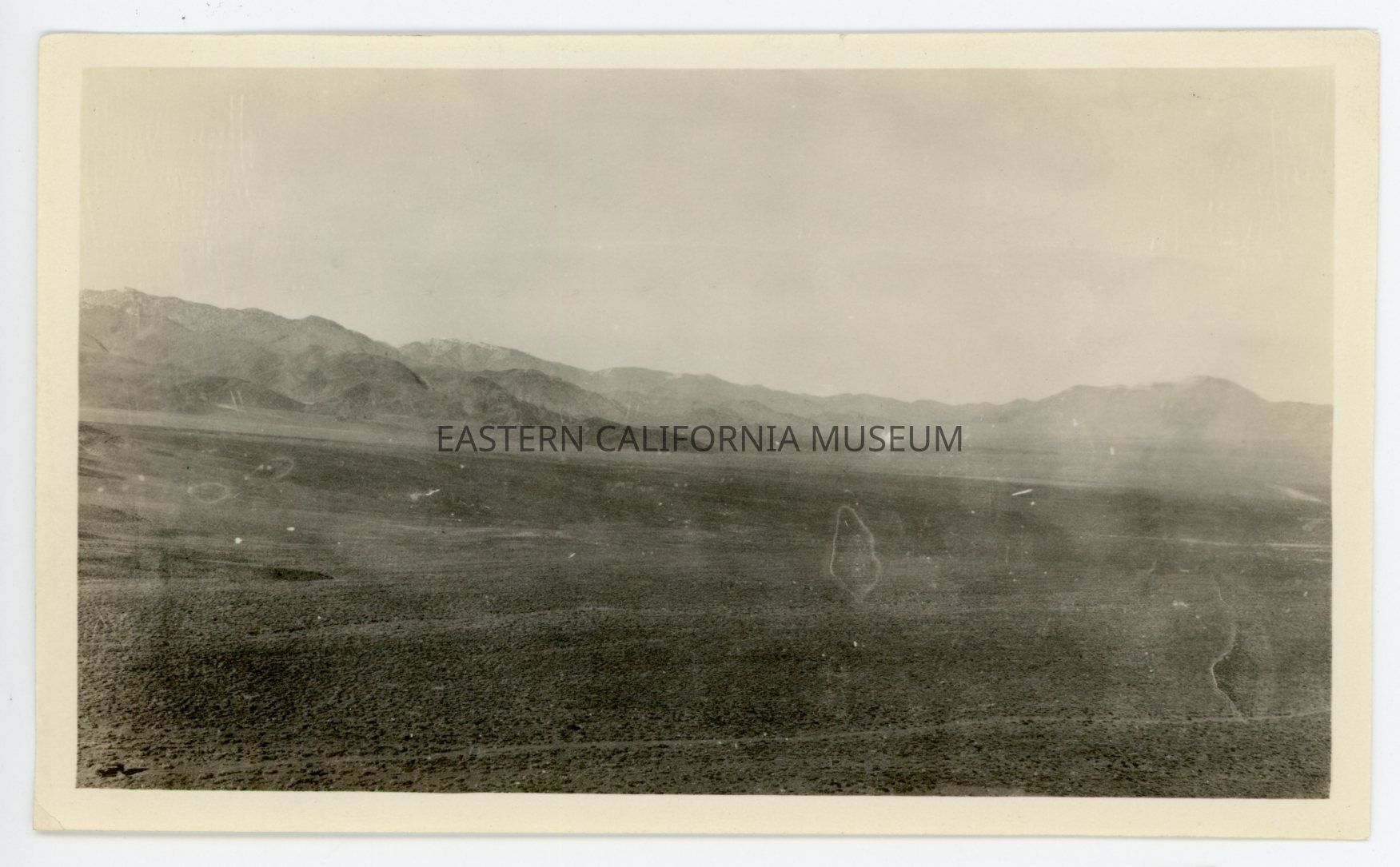 Photo of a desert landscape. There are mountains in the background. The location and date are almost certainly Deep Springs, 1925.Photograph Details